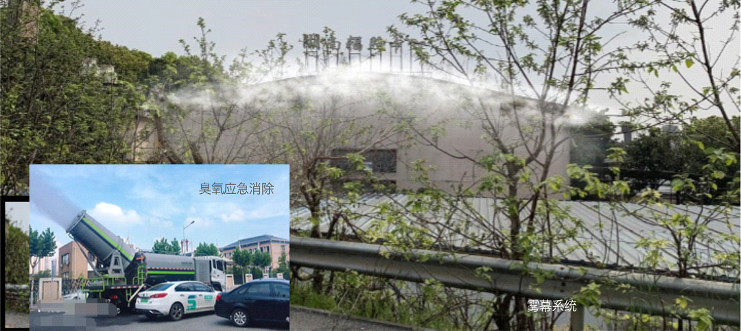 1.针对臭氧污染严重的区域或排放浓度的时段,可以采取臭氧污染移动应急措施。即当臭氧浓度超过该功能区浓度限值20%或超过浓度限值,低于20%但持续3小时以上时,对臭氧浓度高的区域或污染源展开雾炮车消除臭氧作业。通过喷洒臭氧消除剂,对空气中的臭氧进行即时定点消减,达到高效快速地降低污染,提升空气质量的目的。经臭氧消除剂作用后,臭氧浓度低于该功能区排放浓度限值时,停止臭氧移动应急措施的作业。稀释比例:1:100