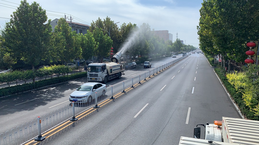2.对城市主干道全面实施洒水、清扫等降尘保湿措施,同时增加增加雾炮车作业频次,减少臭氧生成。