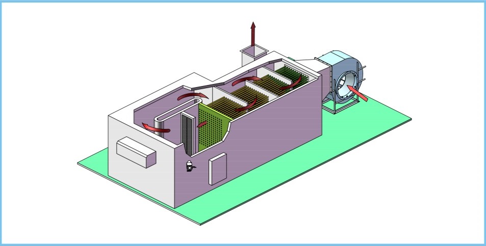 适用范围:大风量(风量>30000m³/h)、中低浓度(浓度<500ppmvVOCs)有机废气,采用沸石转轮浓缩处理