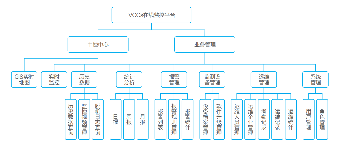 天VOCs在线监控系统建设主要为了按环保部现行标准规定,接收、解析各固定污染源挥发性有机物(VOCs)排放数据,建立VOCs监测网络;计算VOCs排放,利用GIS信息强化VOCs排放的监察时效性,提高重点区域大气环境中特征污染物监控的准确性;采用多线程异 步通信技术与各监测点通信,实现排放数据上传到环保部门,利用实时监控、报警管理等对现场固定污染源VOCs进行有效监管。