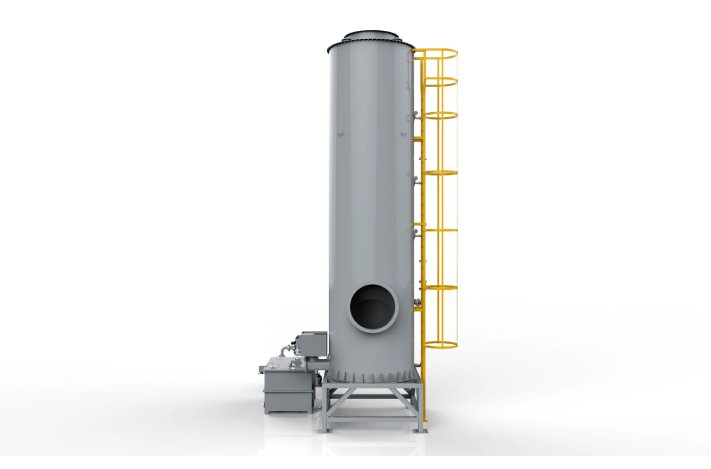 超重力旋流湿式除尘设备,利用气液传质理论,在废气通过旋流板塔的过程中,诸如二氧化硫、氮氧化物以及油雾颗粒物与吸收液发生不可逆的一系列化学反应生成新的盐类物质和物理的作用将油雾颗粒物捕捉入到循环液中,达到净化目的。