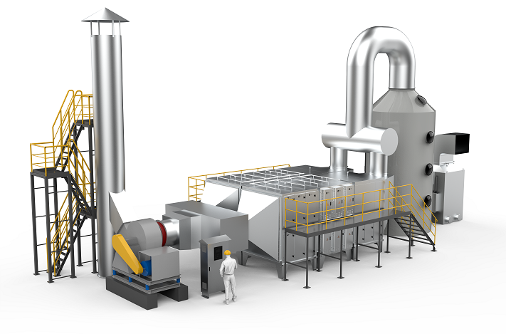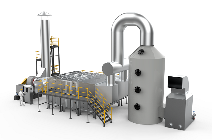 大型干式电除尘设备,是我司根据实际工况定制研发的工业烟尘治理系统,其利用静电力实现颗粒物与气流的分离,主要通过“荷电-沉降-反吹清洗再生”三步实现工业烟尘废气的高效净化处理,具备高频脱附模块对集尘板进行浓缩脱附功能,吸附在模块上的粉尘通过底部灰斗和集尘机完成清洗再生。