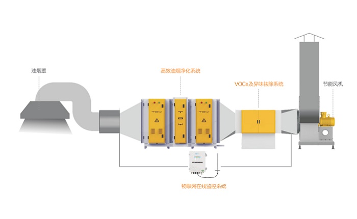 利用激光检测技术、嵌入式技术、互联网技术、无线通信技术,对餐饮企业油烟排放浓度、净化器系统运行状态、风机运行状态等指标进行24小时全方位监测。通过系统将油烟治理设施工况数据与油烟浓度排放数据统计起来,利用我司自主研发的油烟治理设备实施净化处理后达标排放,全面实现感知监测、分析统计、治理排放和运维服务的全过程管理,为环保局和企业提供科学有效的餐饮油烟监、管、治、服一体化综合解决方案。
