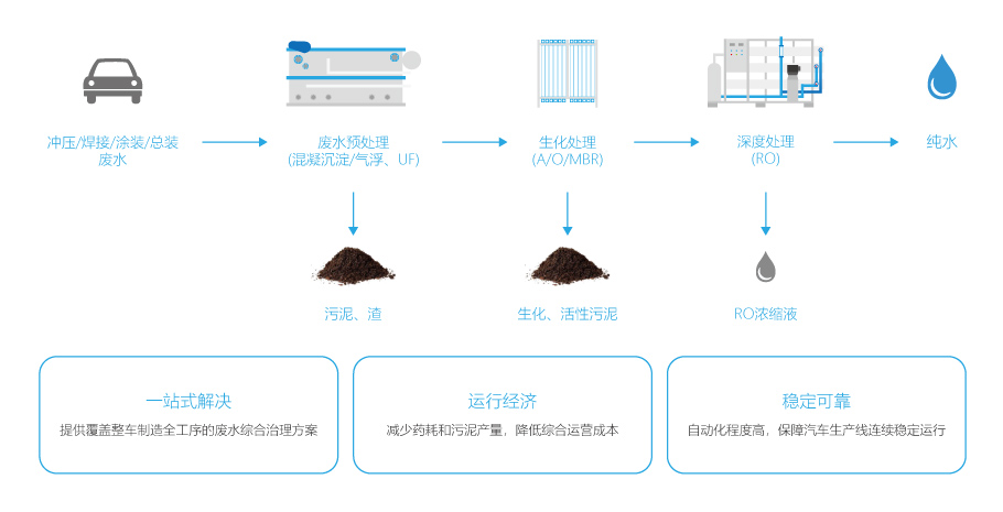 在新能源汽车制造的四大工艺(冲压、焊装、涂装、总装)中,涂装车间的脱脂、磷化、电泳及喷漆工序是废水的主要来源。这类废水成分复杂且污染物种类繁多,包含油分、磷元素、重金属、COD 及漆渣等,不仅处理难度极大,且若未经妥善处理直接排放,会对水体、土壤及生态系统造成严重破坏。针对此类废水成分复杂、污染物种类多、处理难度大的特性,我司定制了集预处理、深度净化于一体的针对性解决方案,可有效去除各类污染物,确保废水稳定达标排放,为新能源汽车制造企业的绿色生产保驾护航。