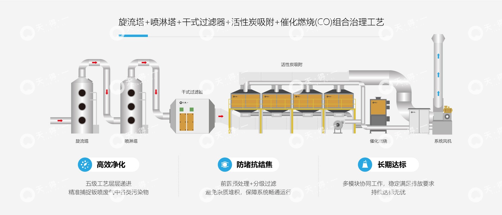 家电及3C产品喷涂固化环节产生的废气成分复杂,具有高温、高湿、高粘附性的典型特征,其内含的漆雾颗粒、苯系物及酯酮类VOCs易造成治理系统堵塞,是制约系统稳定达标排放的关键难题。